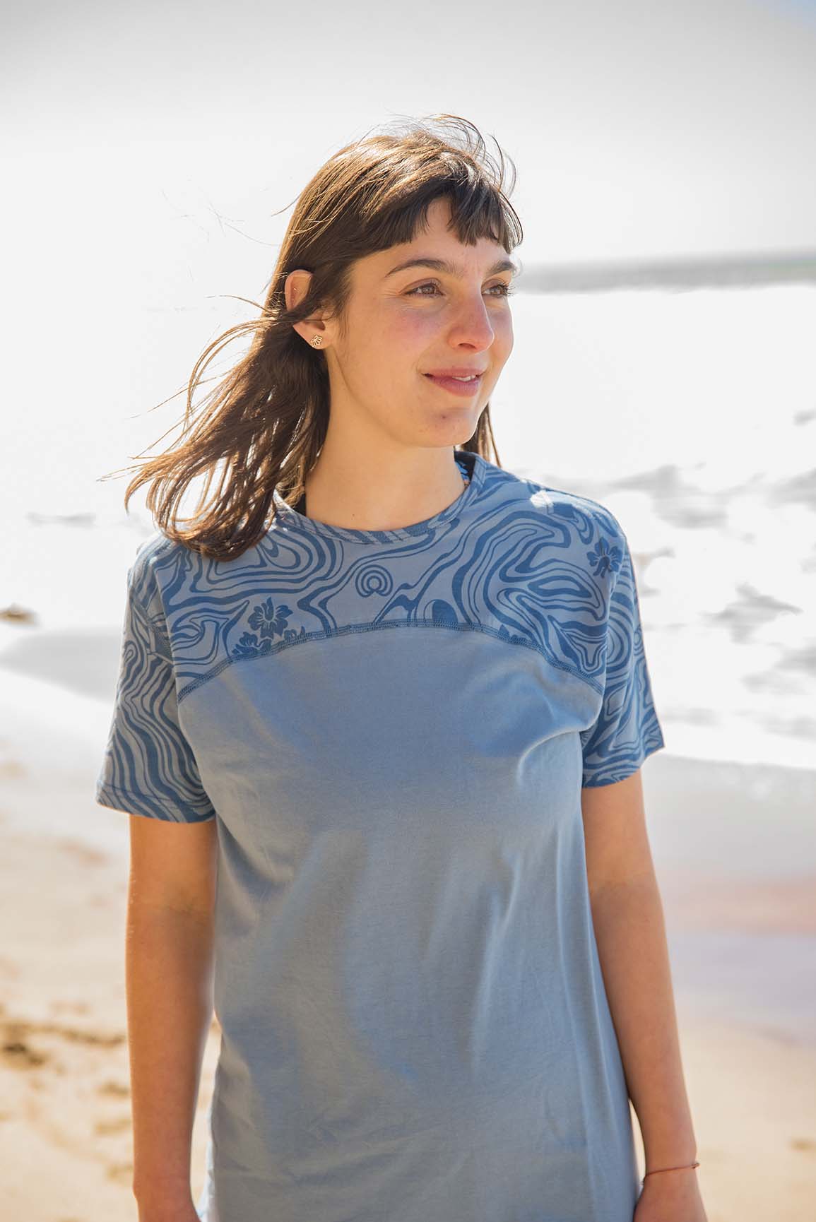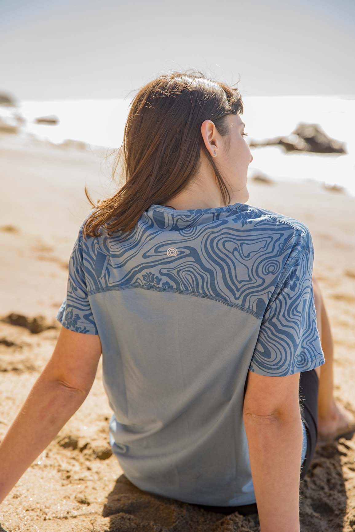 Nuevo diseño de remera diseñada para tu práctica de yoga, cómoda y súper liviana. Está confeccionada en jersey de algodón con recortes estratégicos que combinan liso y microperforado con la estampa Waves en los mismos tonos que la remera. Trae costuras planas para no ajustar de más ni marcar tu piel. Ideal para usarla todos los días y en todas tus actividades.