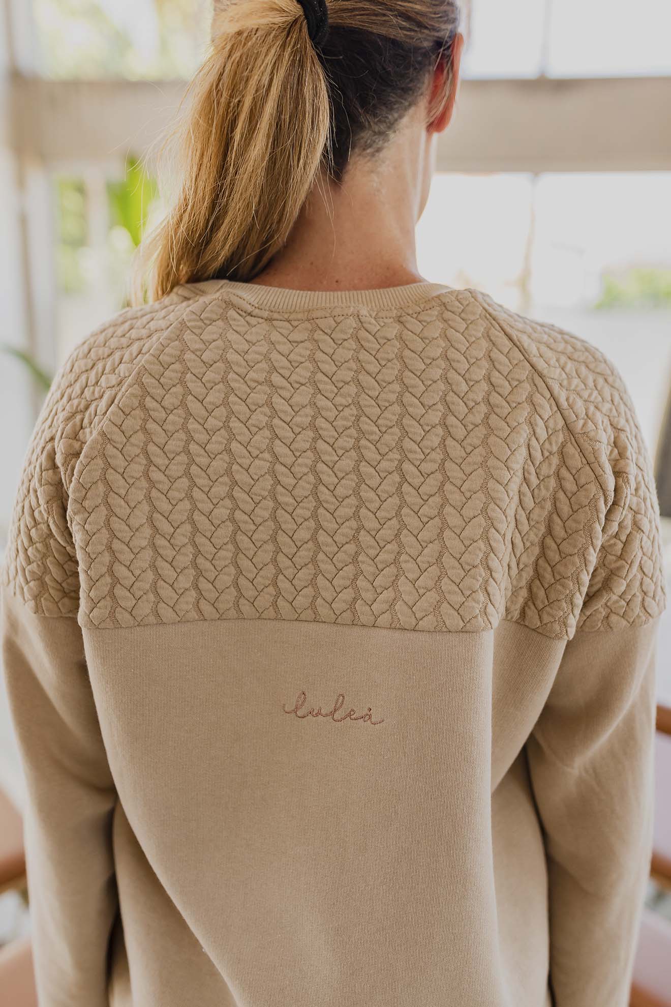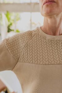 Buzo largo hasta la cadera con silueta descontracturada, cuello redondo y manga ranglan. Es suave, abrigado y práctico para acompañarte en todo momento del día.