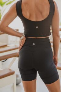 Cintura súper alta y costuras chatas por dentro y por fuera, para que ni las sientas al practicar. Está diseñado para practicas fuertes como Asthanga, donde el cuerpo genera mucho calor. El largo de las piernas es un intermedio entre el Short Ashtanga y la Calza 3/8 Mysore: fresco y cómodo en la práctica, y lo suficientemente largo para ir y venir del Shala.