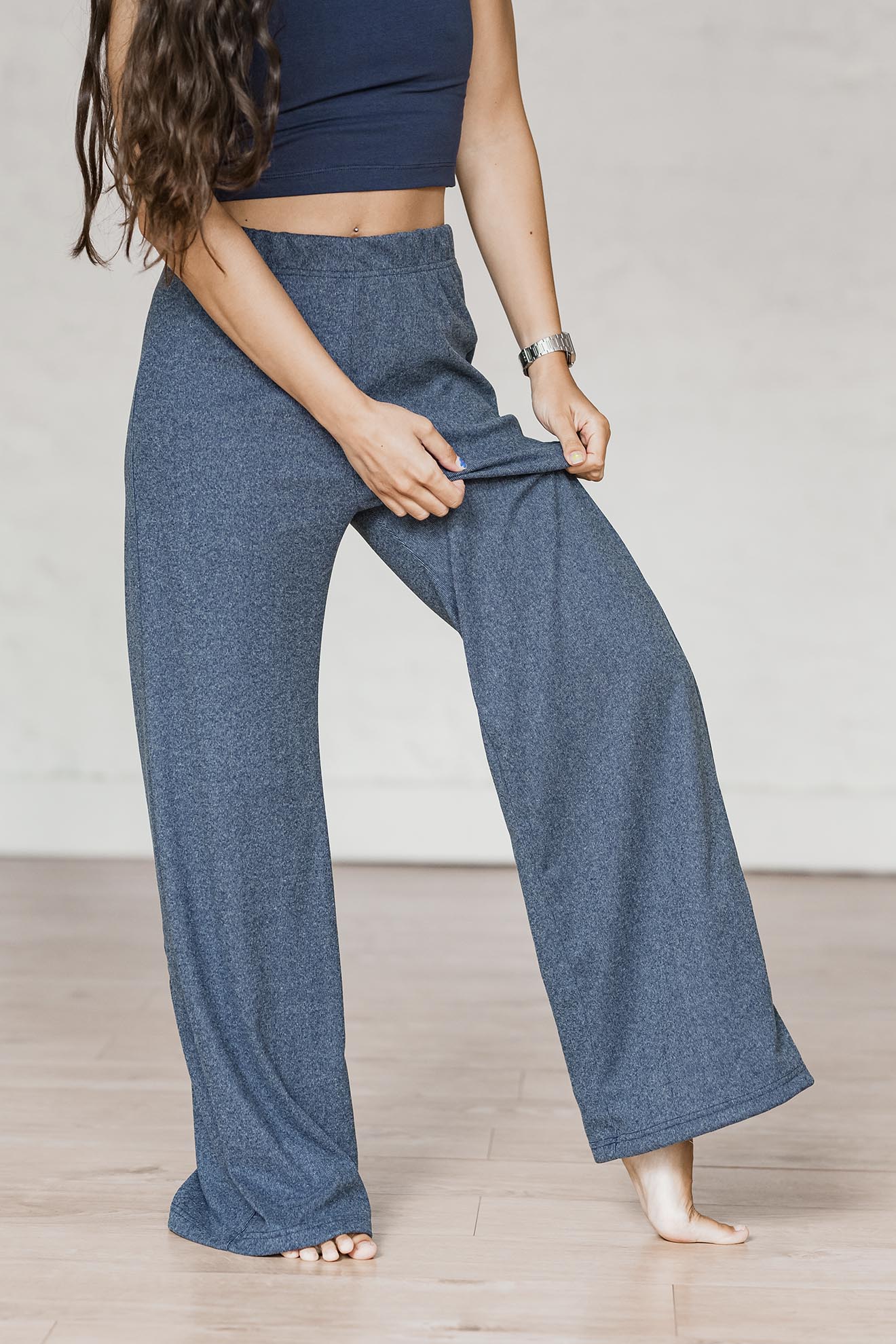 Pantalón largo y ancho, muy cómodo y de textura súper suave. Diseñado para para prácticas suaves, post práctica y uso urbano. Tiene cintura súper alta, un calce perfecto, y una caída delicada que cubre hasta el tobillo. Compañero de este otoño-invierno en toda ocasión.