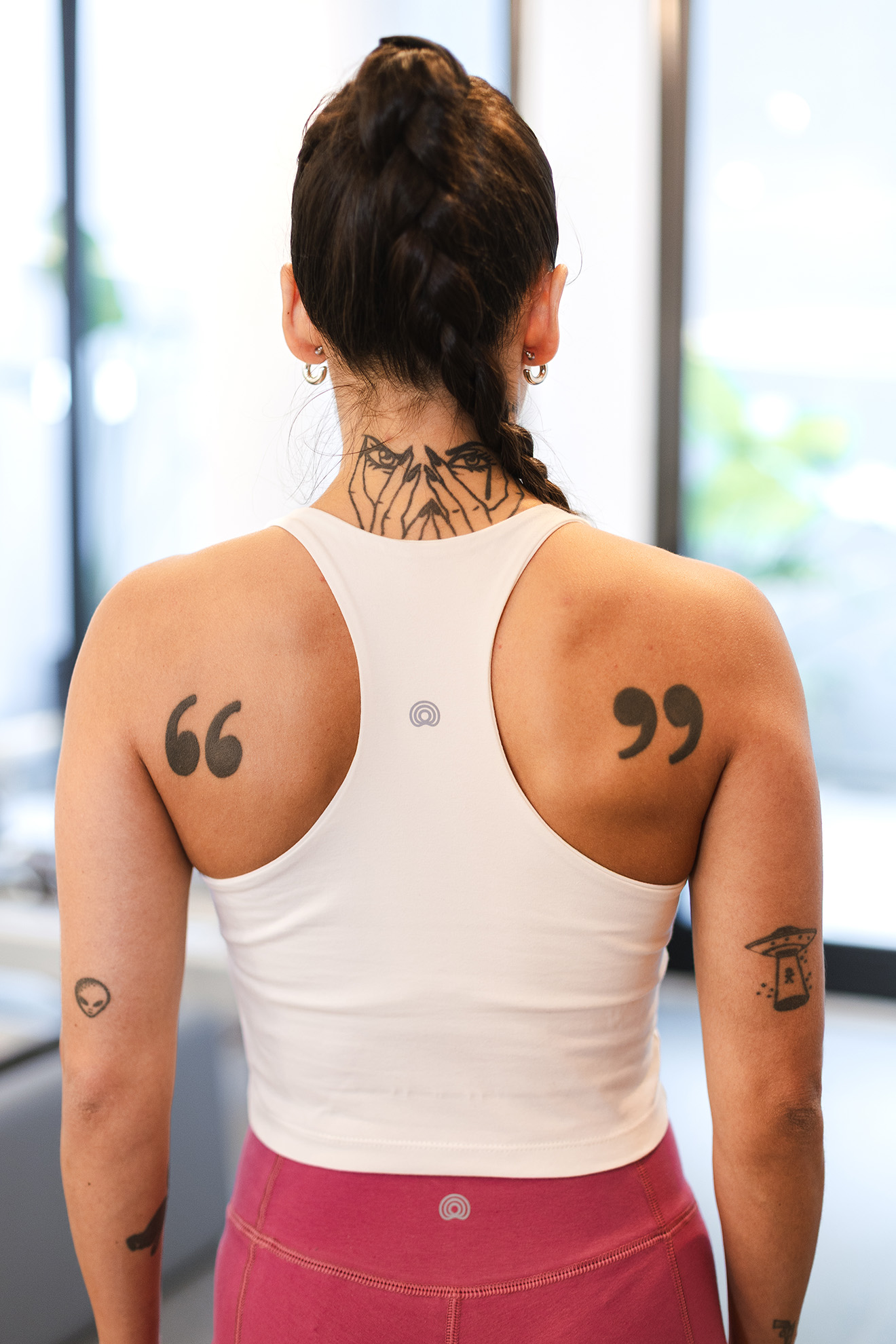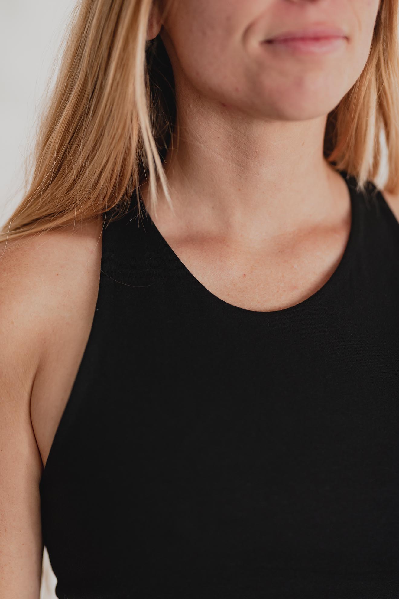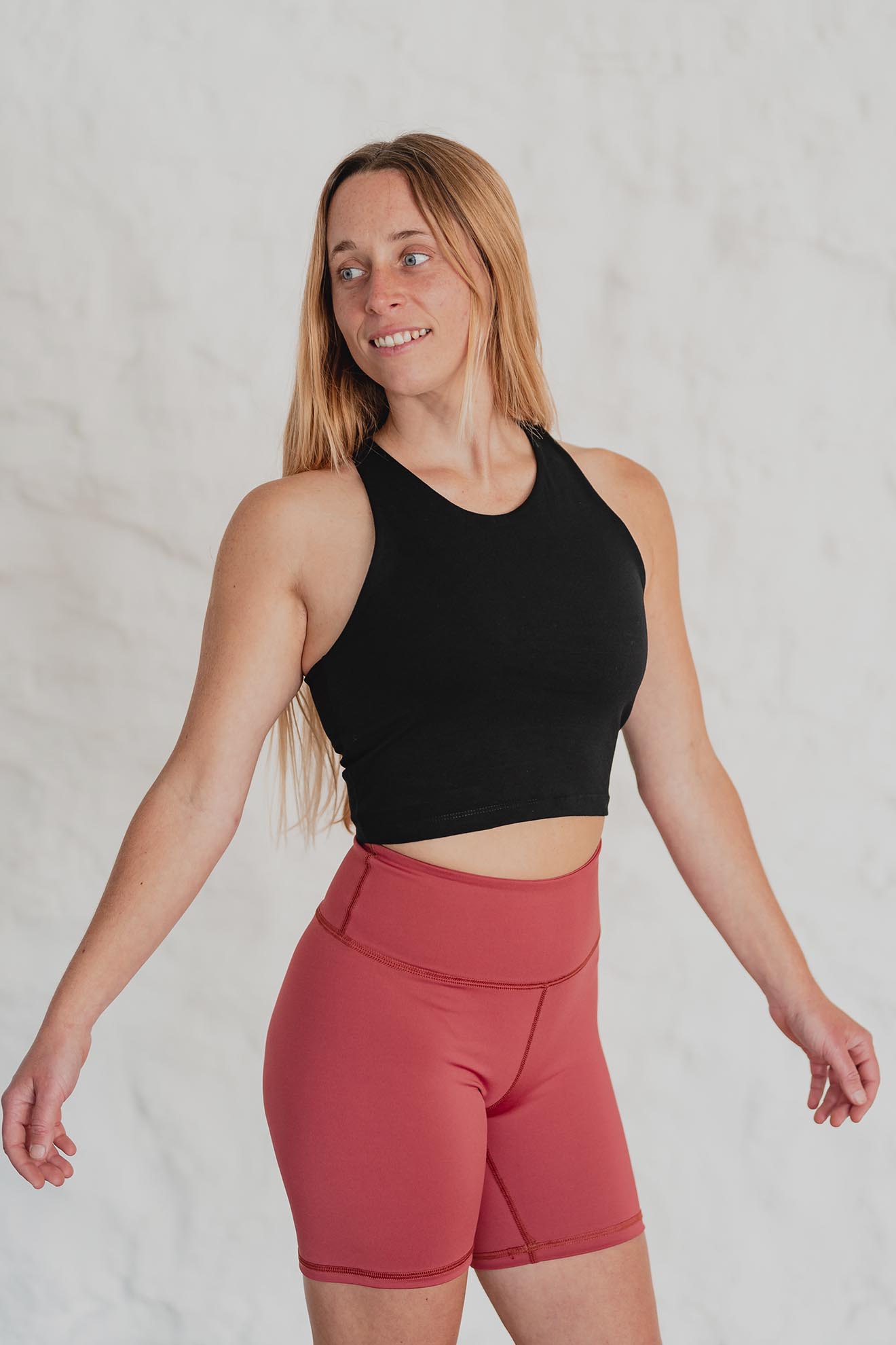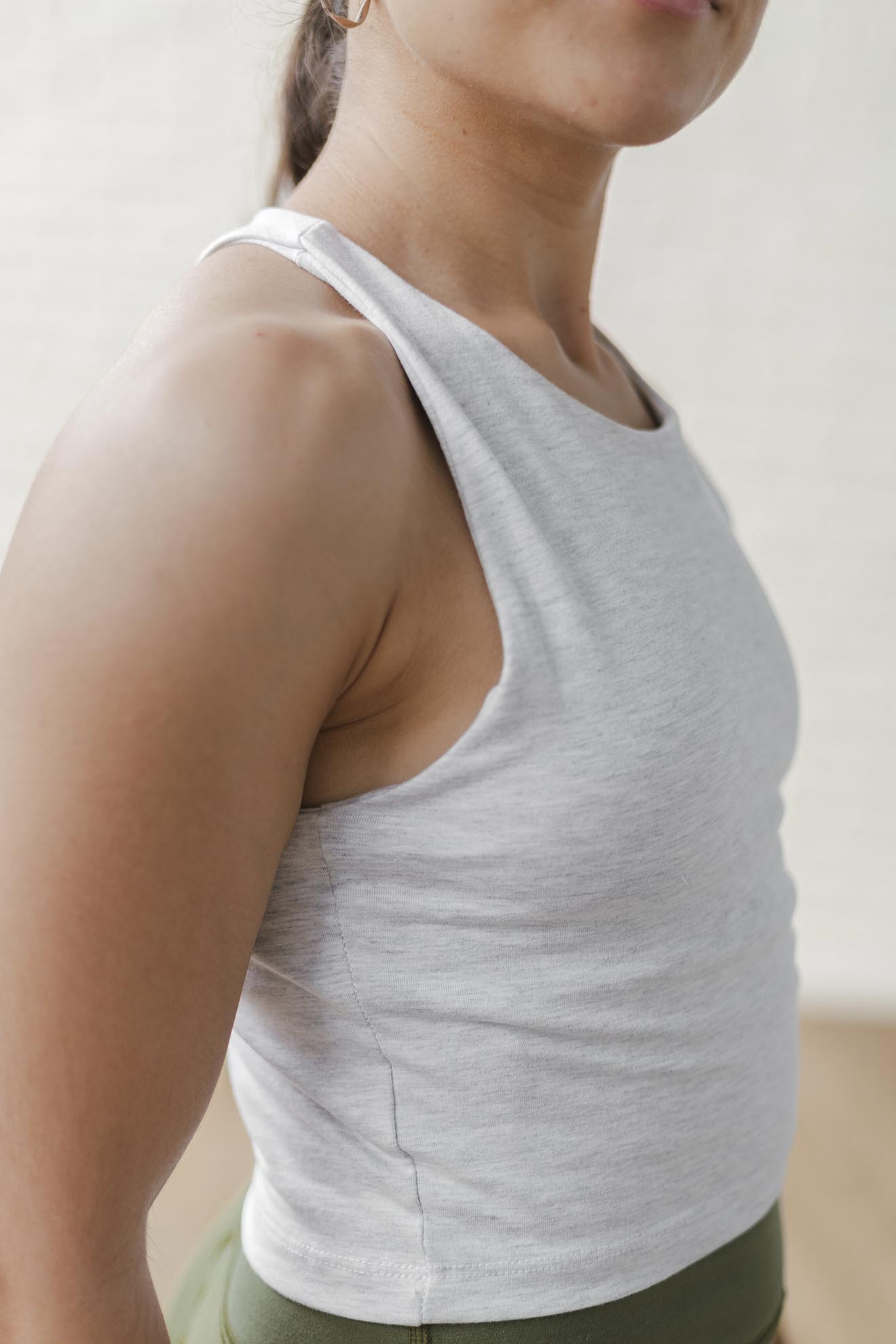 Nuevo diseño de remera crop sin mangas y cuello bien cerradito. Su espalda es de corte tipo deportivo dejando tus omoplatos descubiertos para darte libertad de movimiento. Trae un corpiño interno incorporado para mejor sujeción ofreciendo la posibilidad de no usar top debajo. Es ideal para acompañarte en todas tus actividades y para uso diario. Confeccionada en algodón elastizado súper suave y muy flexible.