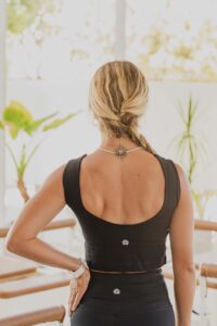 Musculosa crop ideal para prácticas de movimiento por su escote cerrado y su largo hasta la cintura, ofrece confort y seguridad para moverse sin restricciones. Lleva un top interno incorporado que le brinda excelente sostén, para que puedas usarla sin top debajo. Además, su espalda descubierta la convierte en una prenda única. Es tan linda que puede acompañarte en salidas y ocasiones especiales.