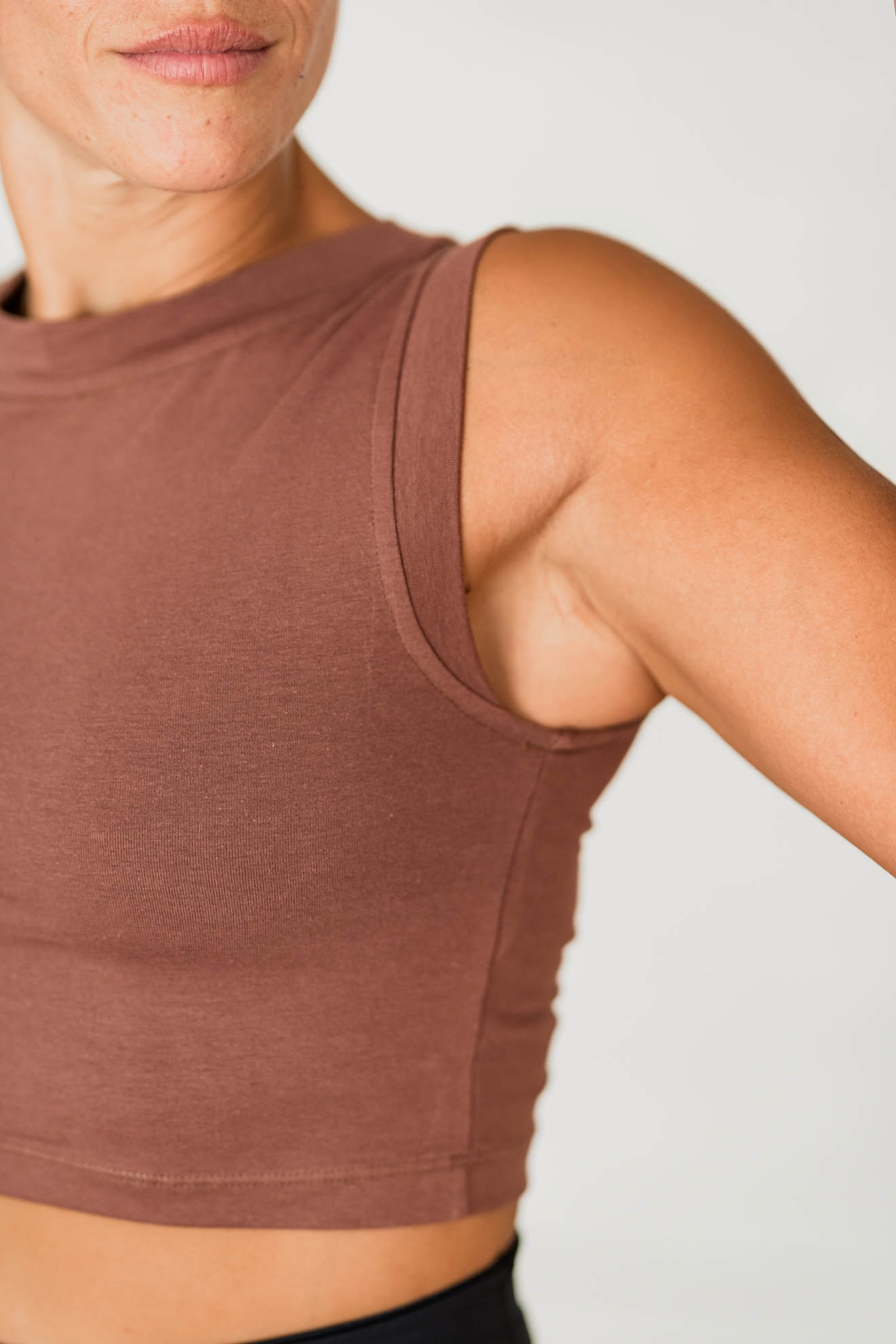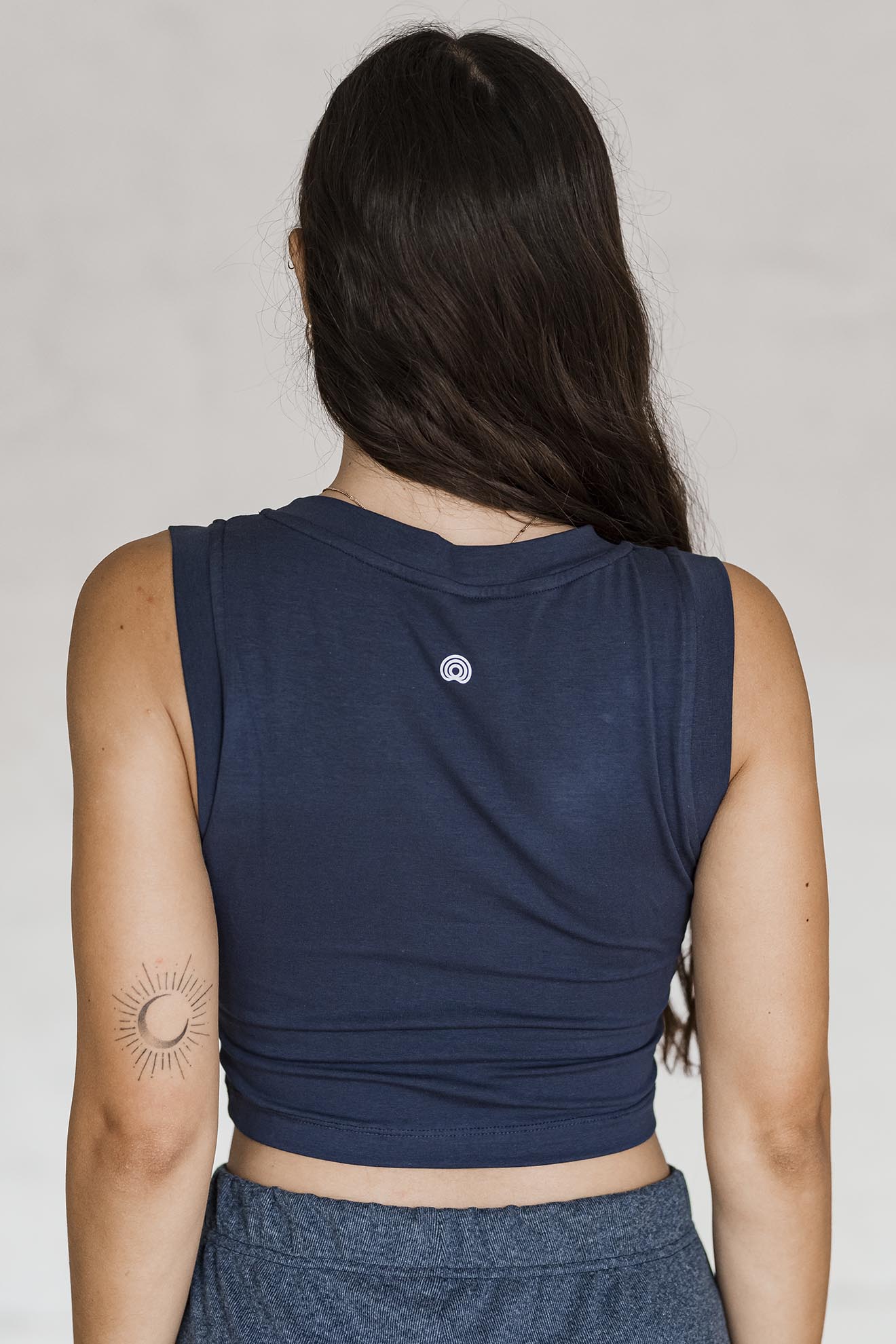Remera crop sin mangas, cuello redondo. Trae un top interno incorporado para mejor sujeción ofreciendo la posibilidad de no usar top debajo. Pensado específicamente para la práctica de movimiento: te permite moverte libremente quedando siempre dónde debe estar. Brinda la comodidad y sostén de un Top, pero viste como una remera.