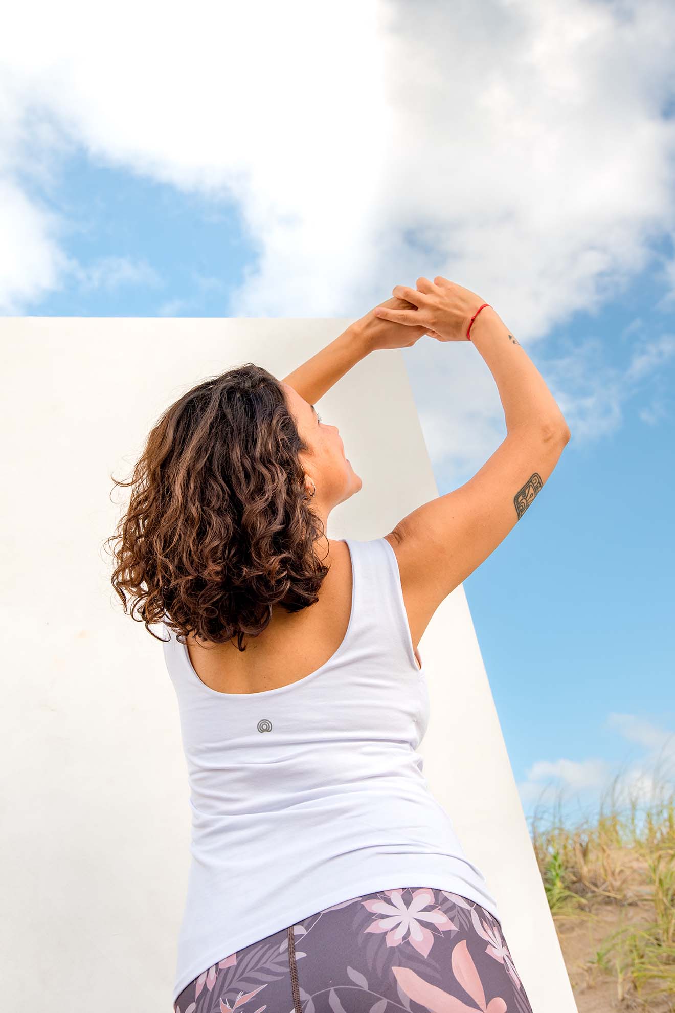 Amamos su espalda descubierta que la convierte en una prenda única. La Remera Bruma es hermosa además de súper técnica. Es tan linda que puede acompañarte en salidas y ocasiones especiales.