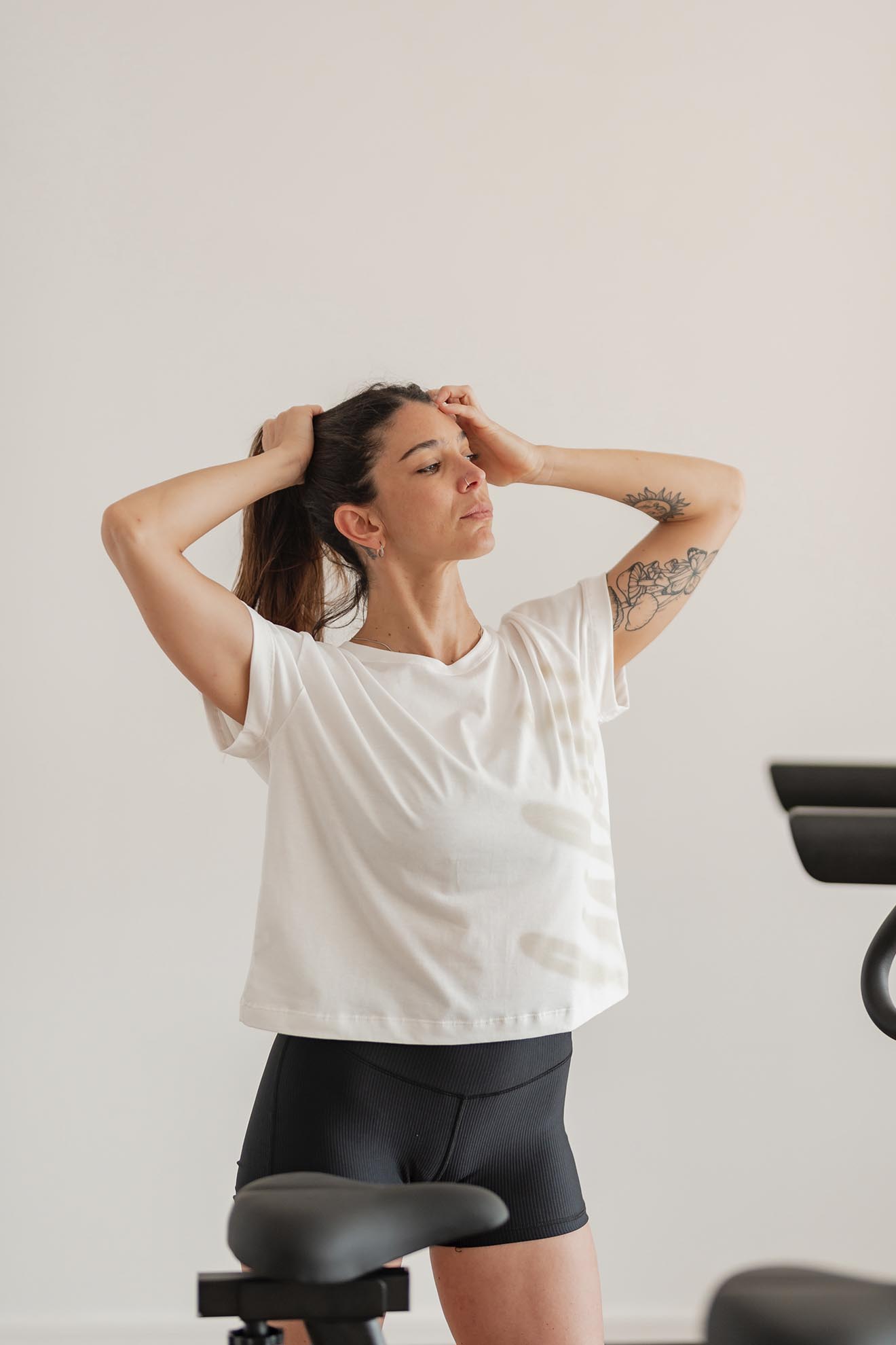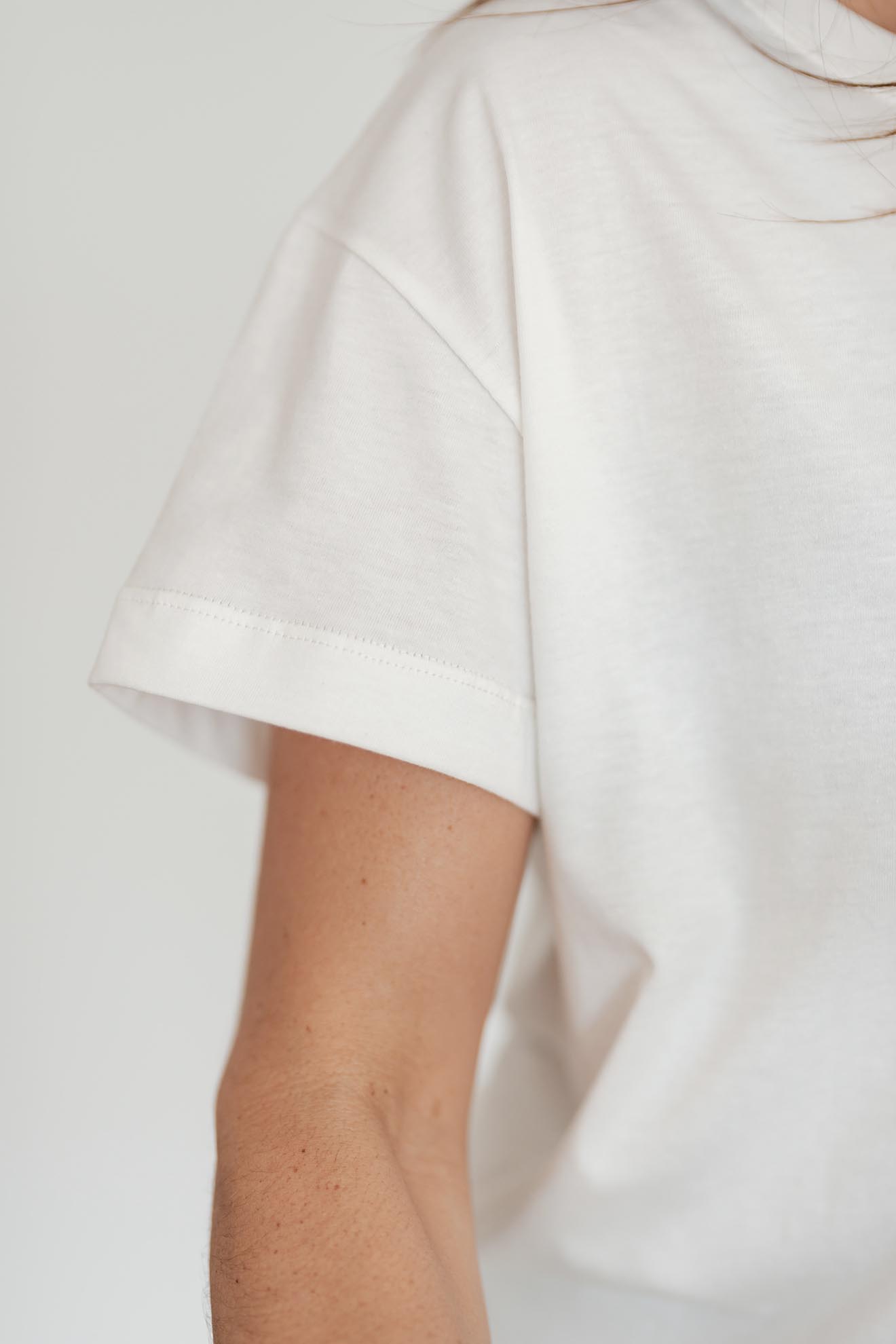 Remera de corte bien relajado y amplio. Es larga hasta la primera cadera, tiene hombros caídos y una silueta súper descontracturada ideal para sentirte cómoda todo el día.