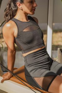 Tiene todos los detalles técnicos de una prenda pensada para las actividades de movimiento: costuras planas por dentro y por fuera, terminaciones elastizadas y está (íntegramente) forrado en algodón en la delantera para un roce amable con la piel.