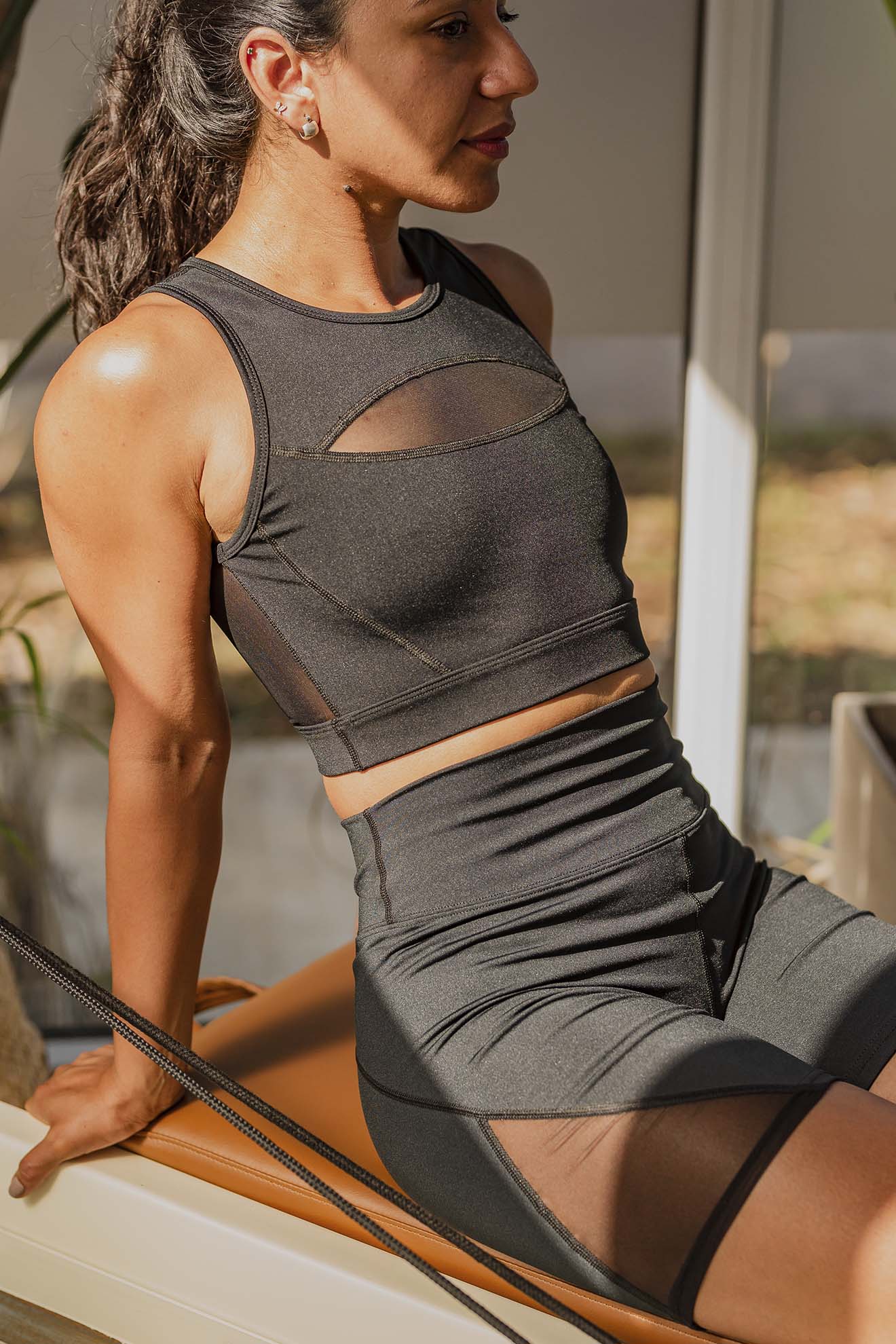 Tela: Está confeccionada en Polisap, una tela deportiva inteligente de alta calidad. Cede para permitirte mayor elongación y libertad de movimiento, y no pierde sus propiedades con el uso. Es de fácil lavado y secado rápido. No transparenta. No se arruga.