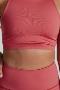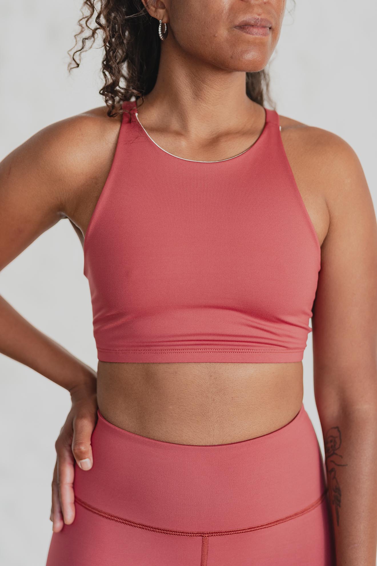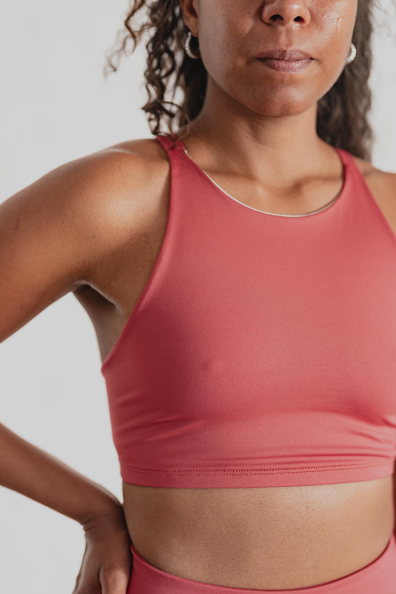 Top amplio a los laterales para dar mayor soporte y con breteles cruzados en la espalda. Su diseño permite movimientos libres al juntar omóplatos. Su largo es unos cm debajo del busto, cerradito al cuello. ¡Favorece mucho si tenés poco busto, y además de cómodo es súper lindo! Trae costuras planas para no rozar ni marcar tu piel.
