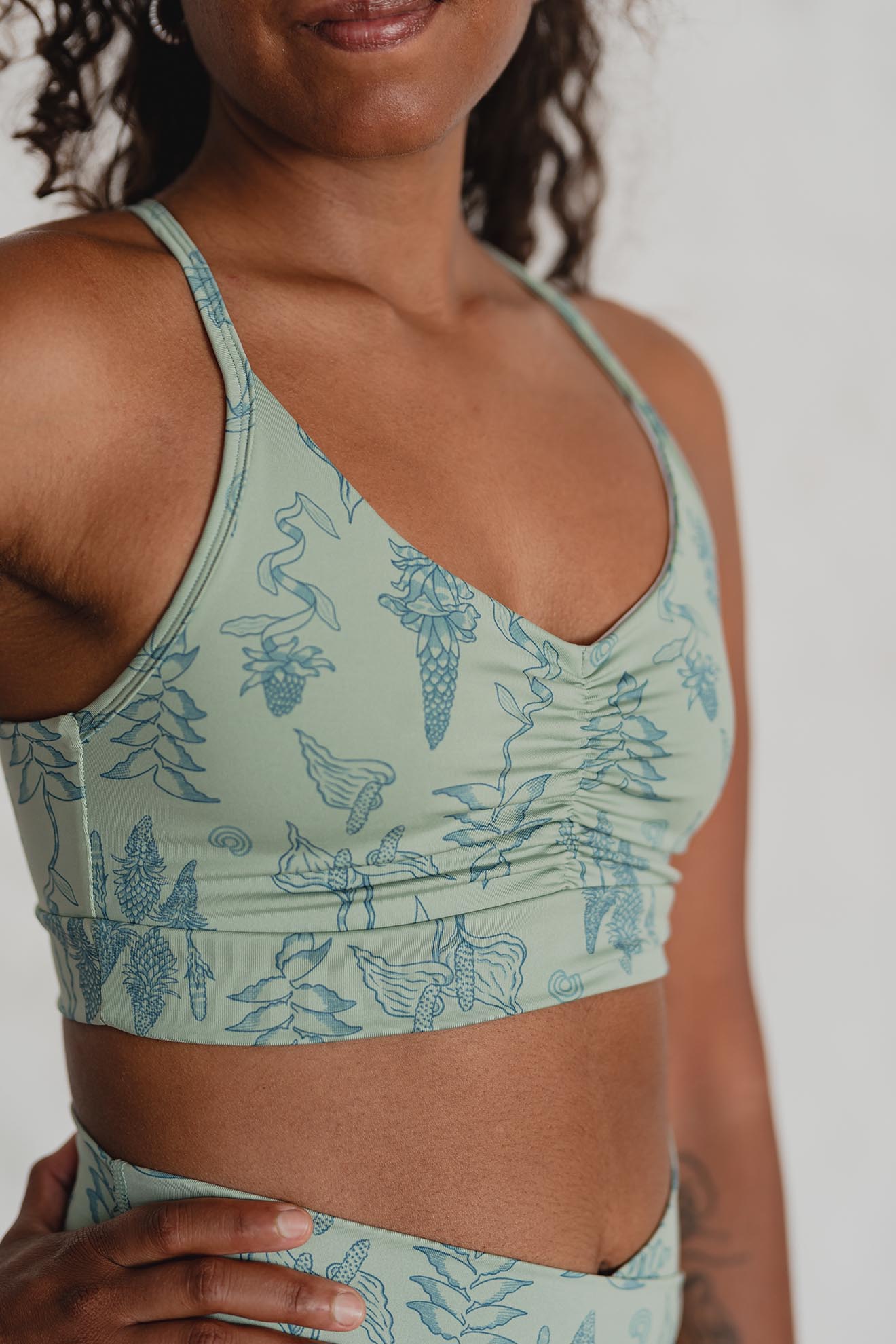 Top con un diseño hermoso para prácticas de movimiento. Sus breteles finos cruzados en espalda te brindan frescura y libertad. El detalle del frunce en el frente le da un estilo único.