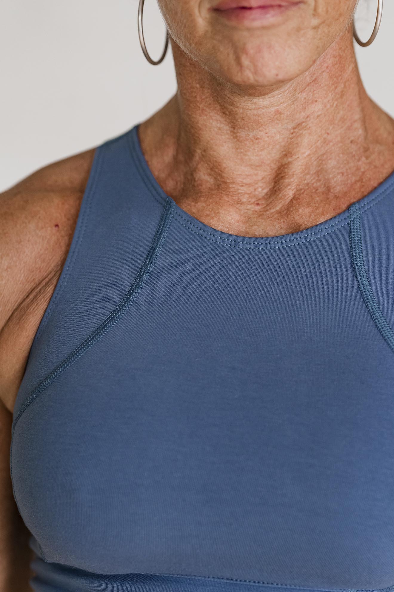 Top diseñado especialmente para acompañar tus movimientos con detalles técnicos que lo hacen súper seguro y confortable. Tiene escote cerrado y recortes con costuras planas para brindarte mayor sujeción y comodidad. Su espalda tipo deportiva está pensada para darte libertad de movimientos en los omóplatos.