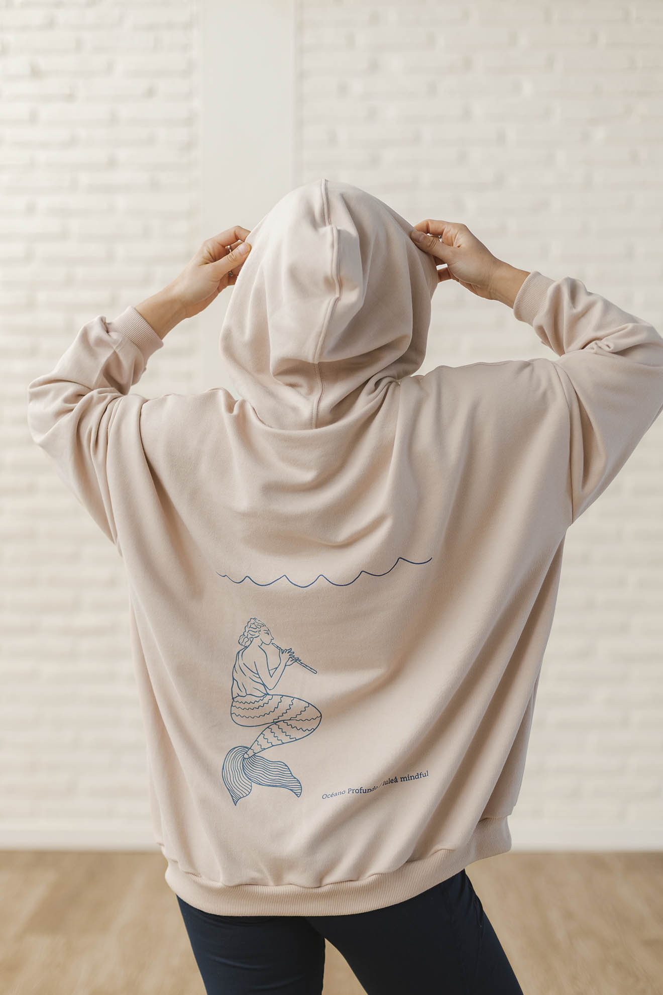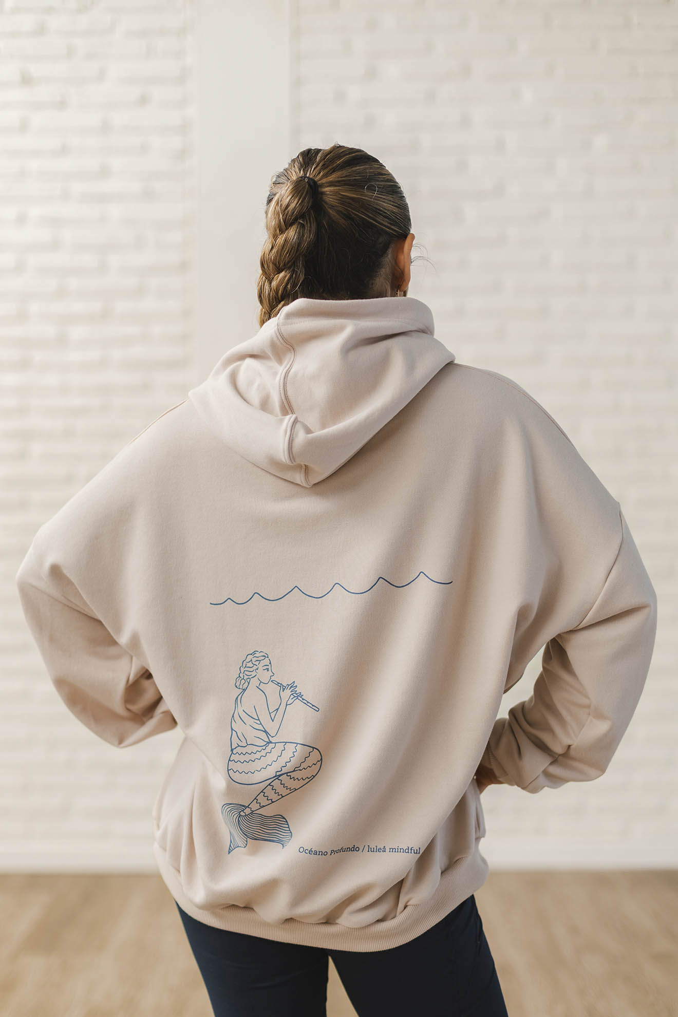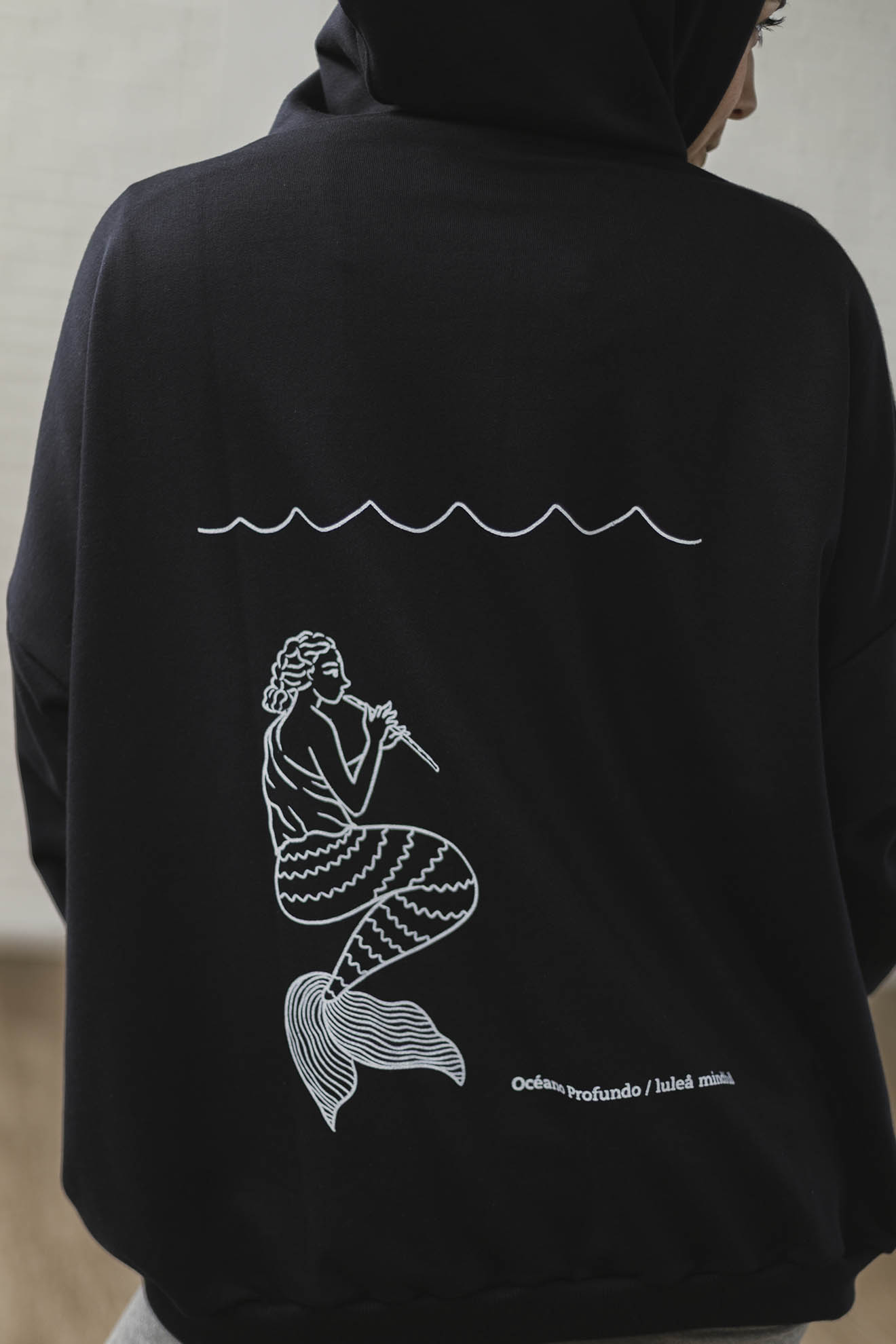 Trae la estampa Océano Profundo en la espalda realizada en serigrafia usando la técnica tintero partido.